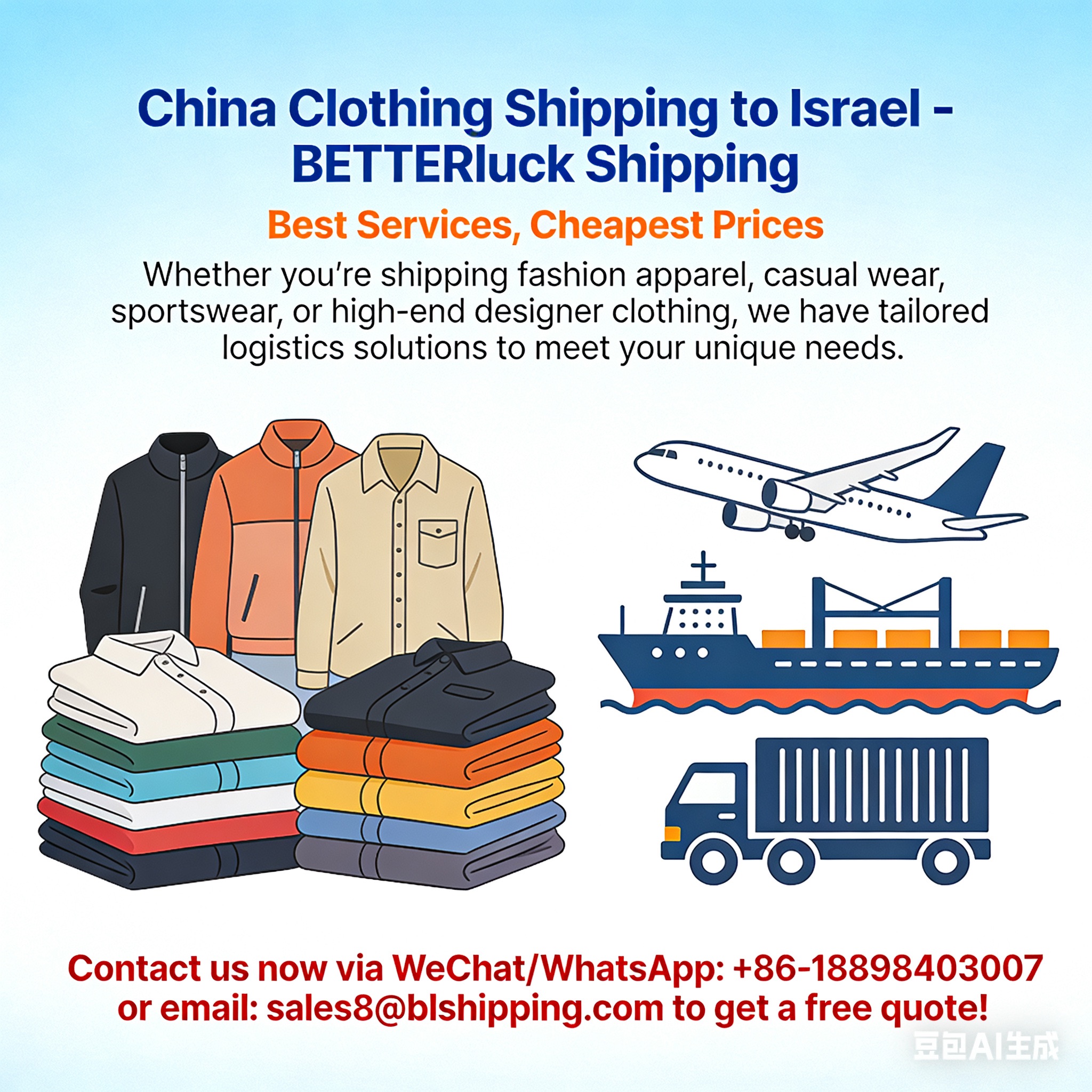 Are you an Israel-based clothing retailer, e-commerce seller, or business owner struggling to find a reliable and cost-effective shipping solution for importing clothing from China? Look no further than BETTERluck Shipping. As a professional international logistics provider specializing in China-to-Israel clothing shipping, we pride ourselves on offering the best services at the cheapest prices, ensuring your clothing goods arrive safely, on time, and within your budget. Whether you’re shipping fashion apparel, casual wear, sportswear, or high-end designer clothing, we have tailored logistics solutions to meet your unique needs. Contact us now via WeChat/WhatsApp: +86-18898403007 or email: sales8@blshipping.com to get a free quote!