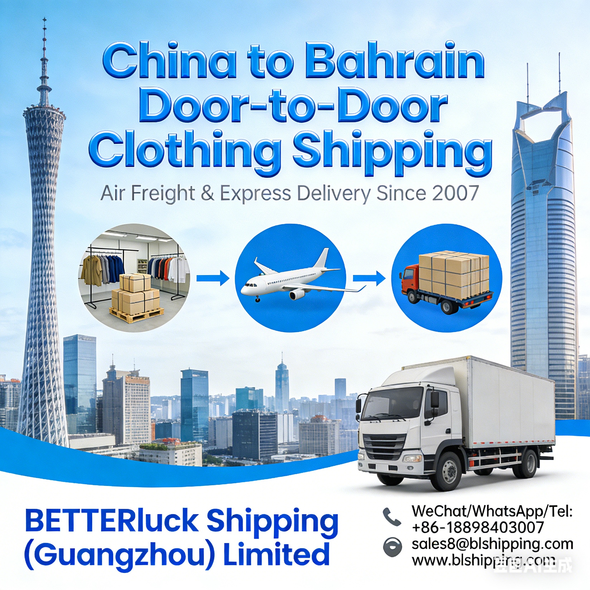 Since 2007, BETTERluck Shipping (Guangzhou) Limited has been a professional freight forwarder and logistics provider, specializing in door-to-door clothing shipping services from China to Bahrain. With 20 years of industry experience, we integrate international express delivery (DHL, FedEx, UPS), air transportation, sea freight (LCL & FCL), customs clearance, and cargo brokerage services to offer you the best solution with cheap price, fast delivery, and premium service. Whether you are a clothing wholesaler, retailer, or e-commerce seller, we ensure your goods from China’s wholesale markets are safely and efficiently delivered to Bahrain’s buyers.