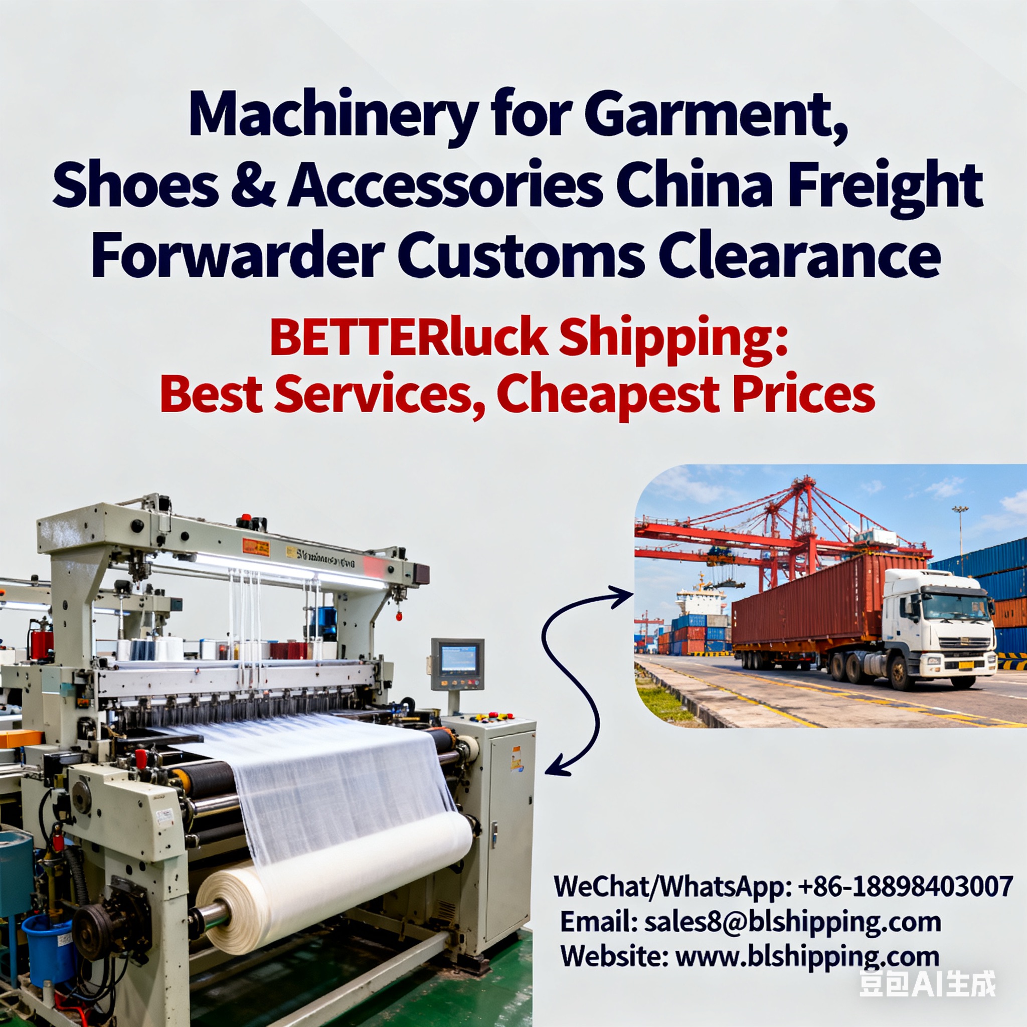 Machinery for Garment, Shoes & Accessories China Freight Forwarder Customs Clearance - BETTERluck Shipping: Best Services, Cheapest Prices
