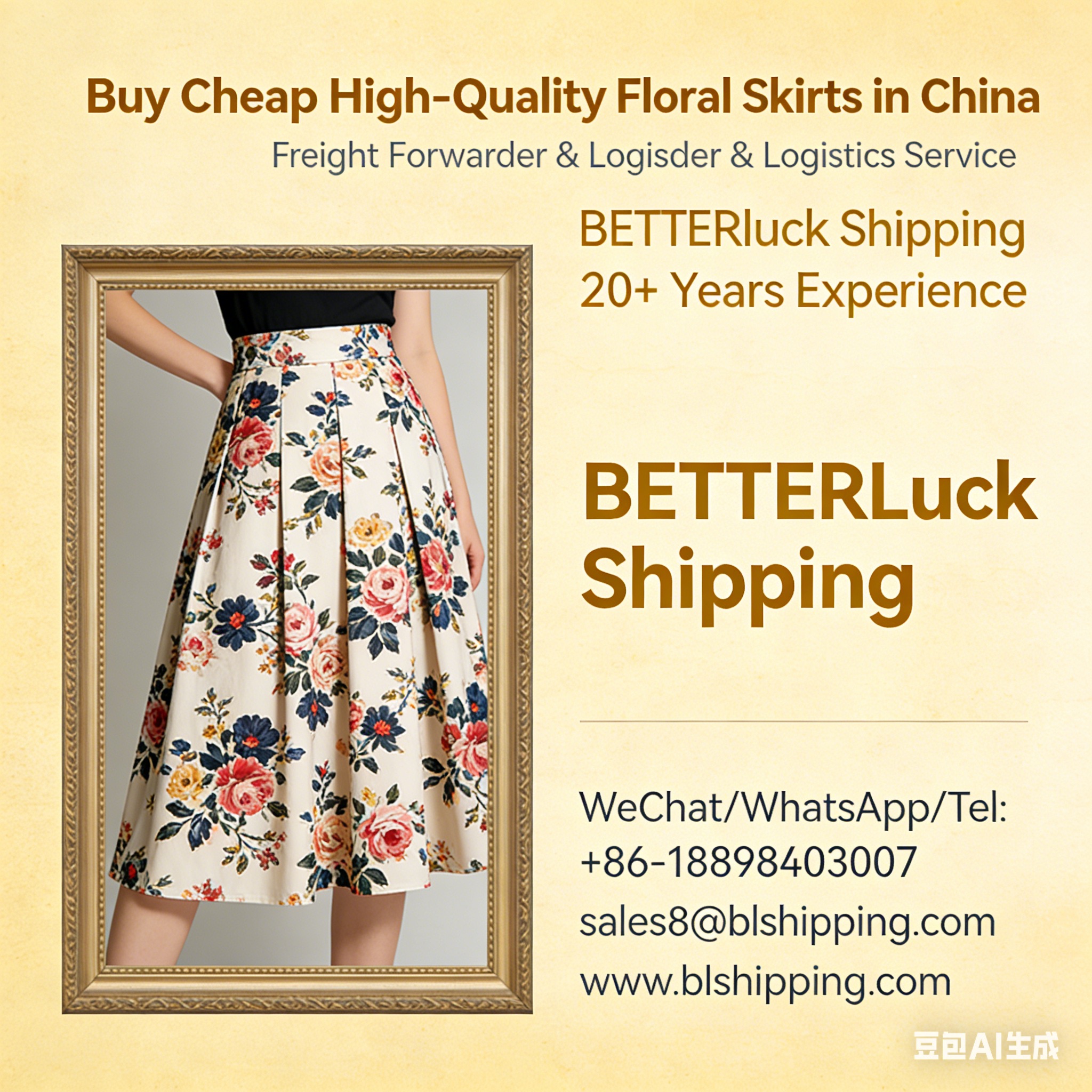 To make your floral skirt sourcing and international shipping seamless, BETTERluck Shipping (Guangzhou) Limited has been providing professional logistics and shipping services since 2007. With 20 years of industry experience, we are your trusted cargo professional broker, offering comprehensive solutions including international express delivery (DHL, FedEx, UPS), air transportation, sea freight (LCL & FCL), customs clearance declaration, door-to-door logistics (from seller to buyer), and more. We commit to cheap prices, fast delivery, and the best service to meet all your shipping needs for floral skirts and other clothing products.